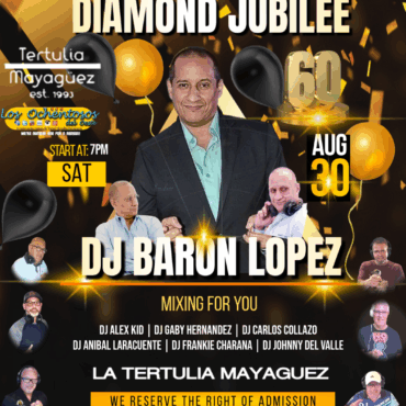 30 Aug 2025 La Tertulia Mayagüez — Mayagüez DJ Baron Lopez Diamond Jubilee 60yrs Celebration More info